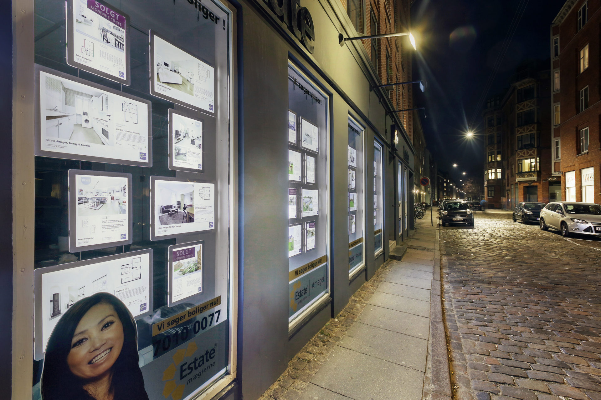 Une installation du modèle VitrineMedia VM TWO donnant à Estate Amager l’opportunité de customiser son affichage en fonction de ses besoins et envies sans besoin d’outils